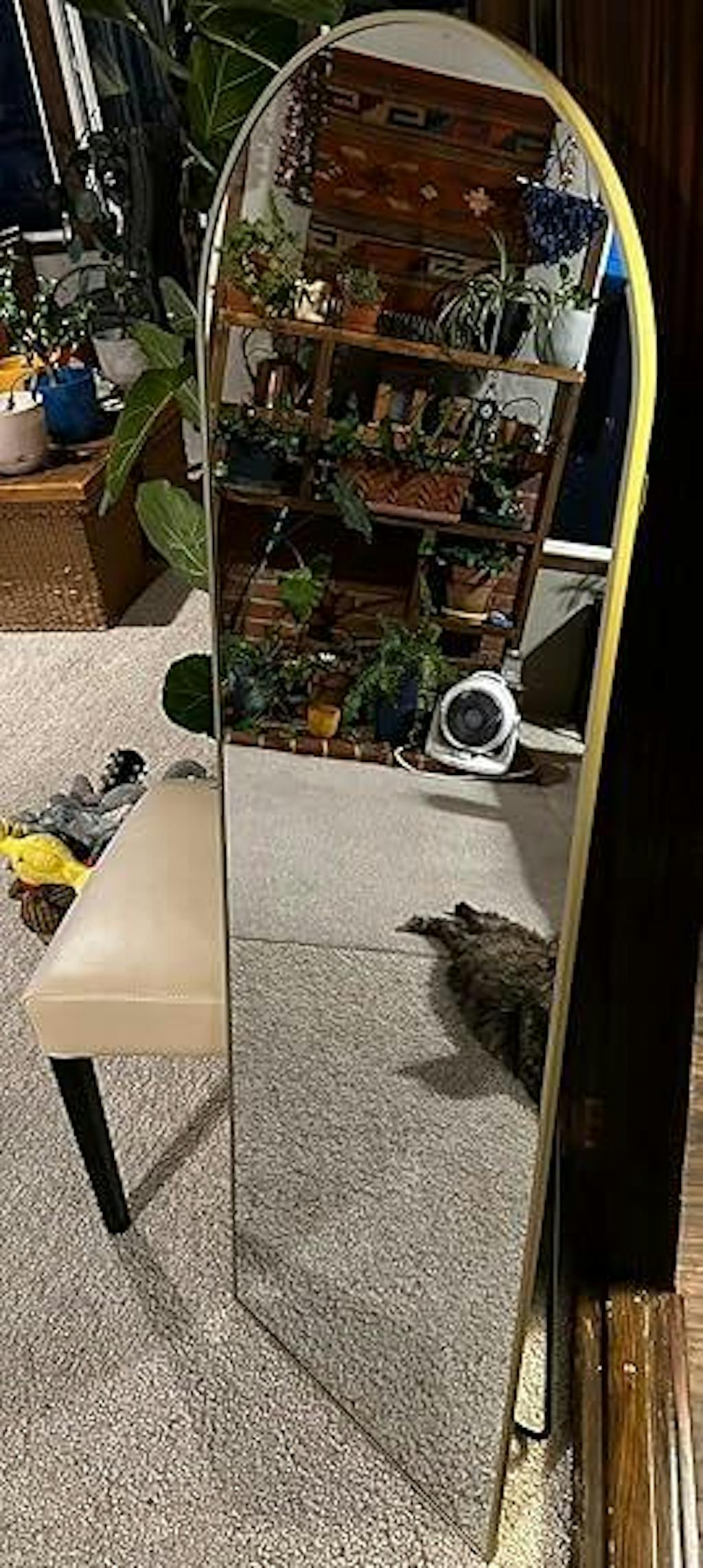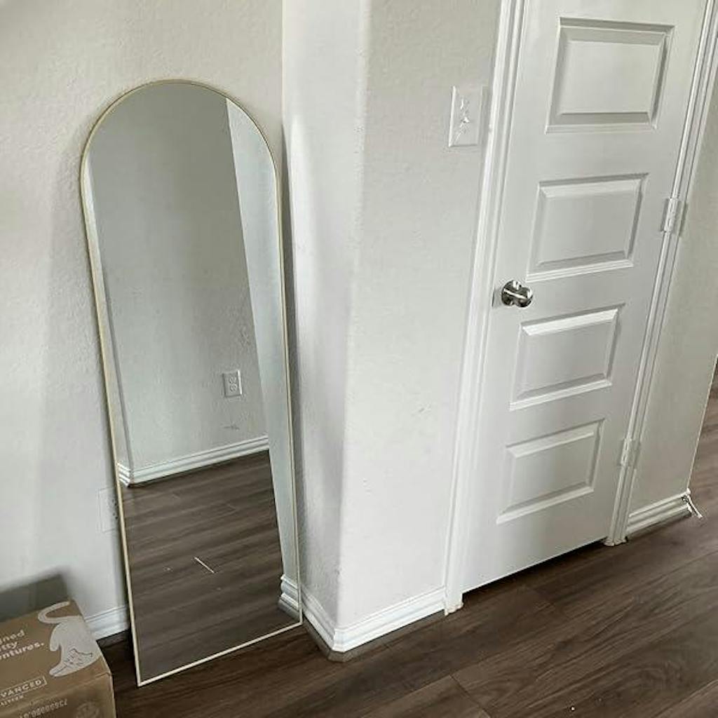 This is a gorgeous mirror. It’s crystal clear with no distortions. The gold arched frame is well done & adds to the beauty of the mirror. It’s a sleek stylish design. It’s the perfect size to check your outfit. Angled straight my 6’1” hubby can see himself fully. It feels weighty, durable, & well made. It has mounts for wall hanging or a foldable locking stand to display on the floor. I appreciate the piece of mind the anti-breakable tempered glass gives. It’s affordable but looks high end! If you need a mirror for your home large or small I would highly recommend this mirror.