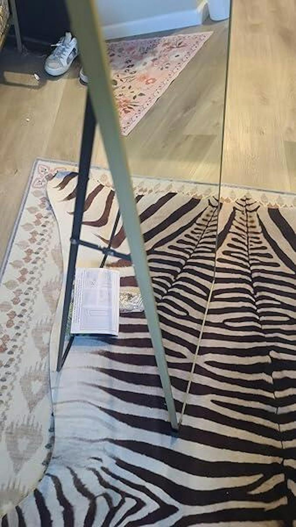 As a Vine costumer, we thought we were ordering the giant mirror so were a little surprised with what we got. But that's not anyone's fault! The mirror we did receive - the 56x18 one, is beautiful and well made. It was well packaged so arrived intact. It was easy to set up and good value for the price. It can be hung or leaned, and it looks attractive on the wall!